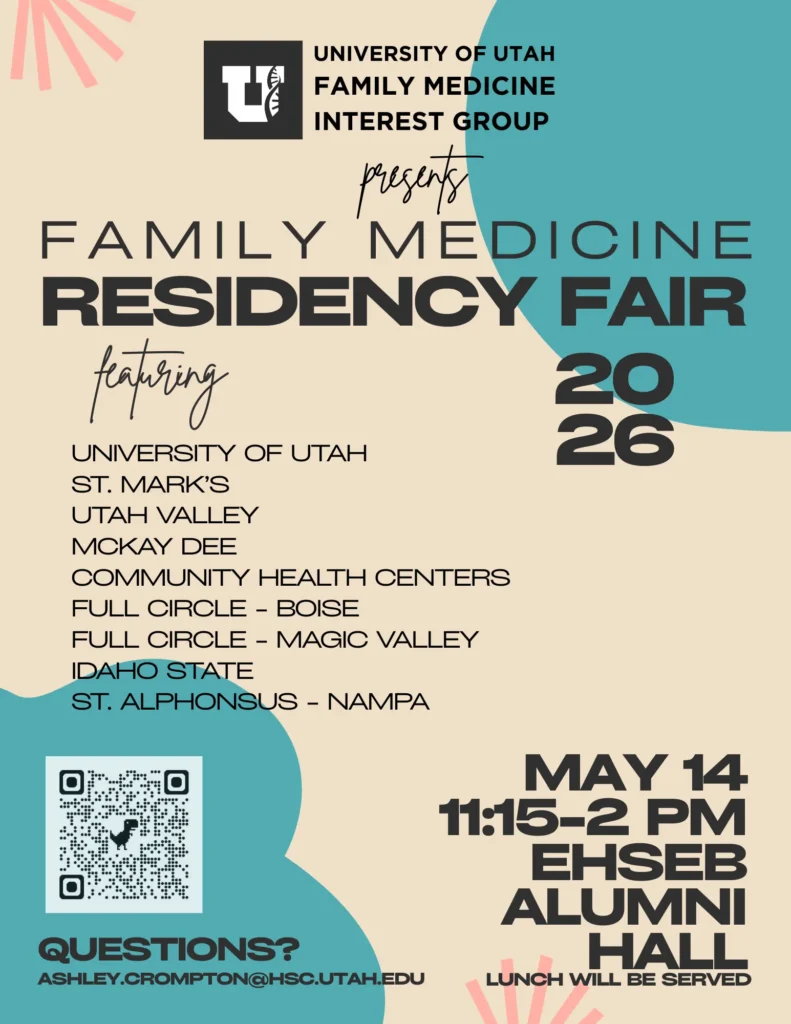 The Spencer Fox Eccles UUSOM Family Medicine Interest Group invites all medical students from Utah and surrounding states to join us for a Family Medicine Residency Fair!